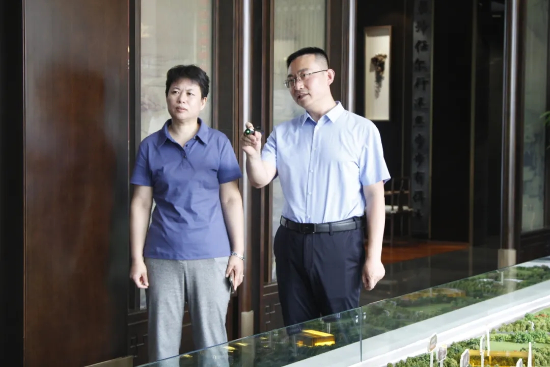 在劉忠森的講解陪同下,黃梅芳一行實地參觀了藍灣半島景觀示范區,了解了西建集團文化發展史,查看了堯夢湖濕地公園的建設情況。