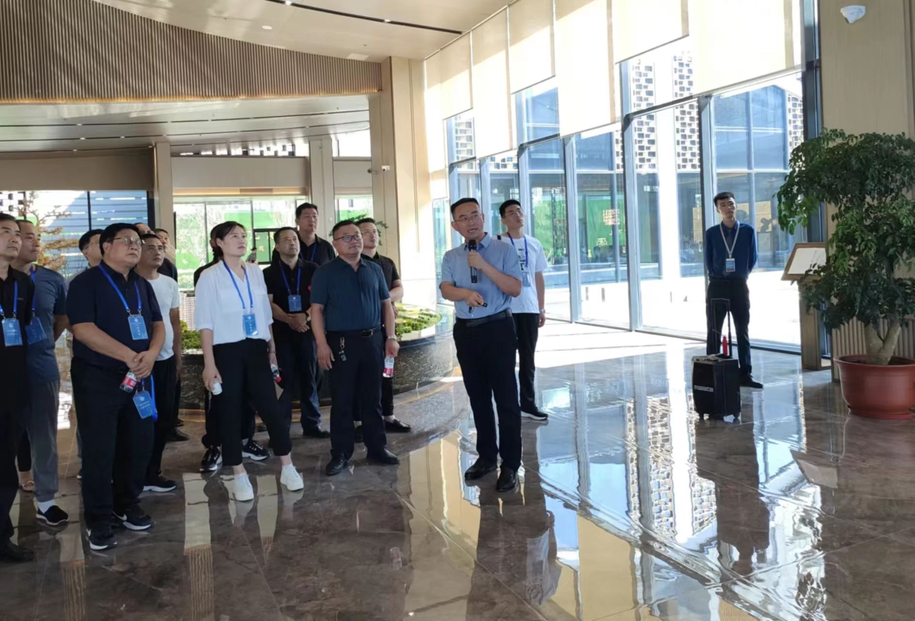 在芮城,臨猗縣新聯(lián)會一行人參觀了西建集團禹王臺太空艙項目。